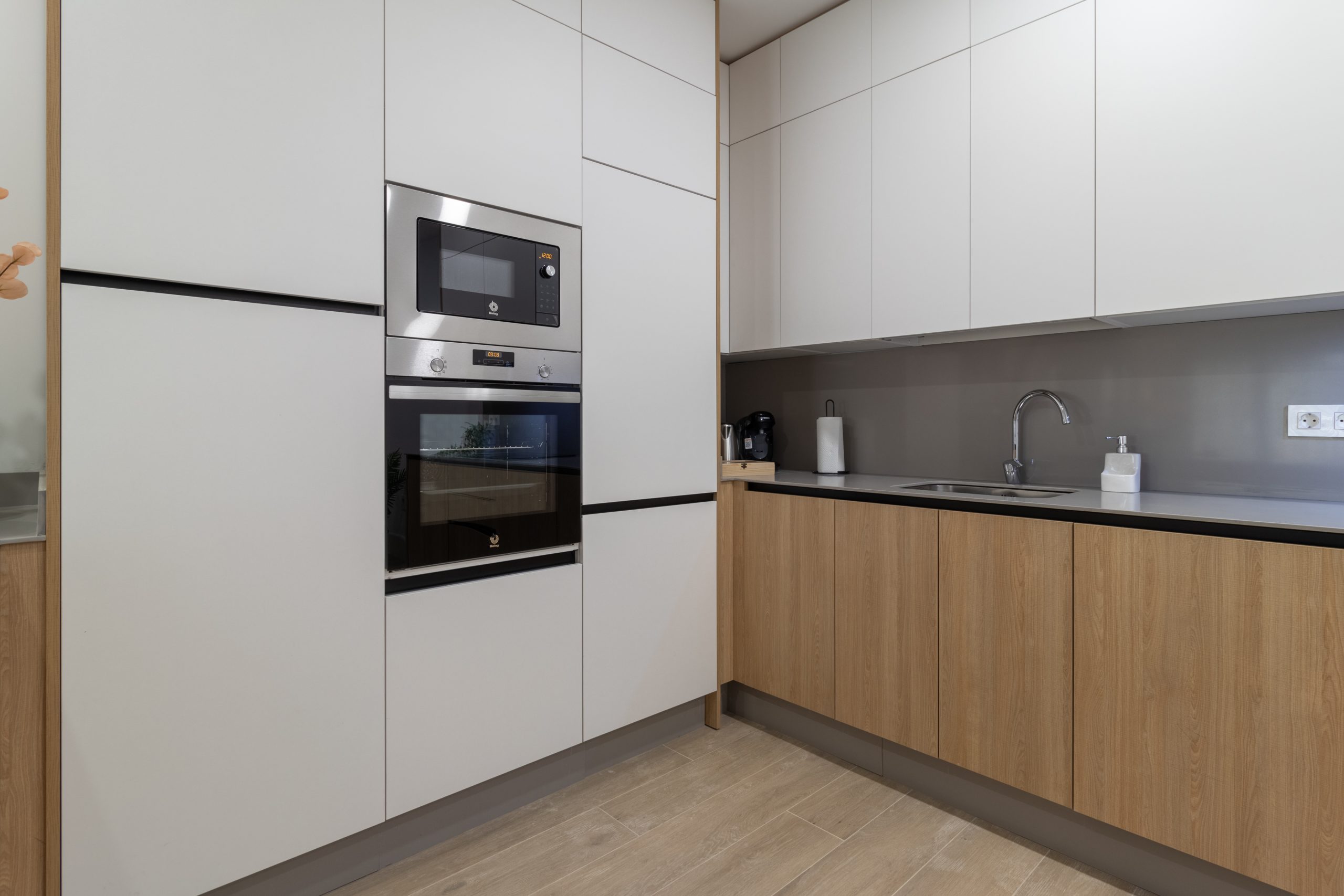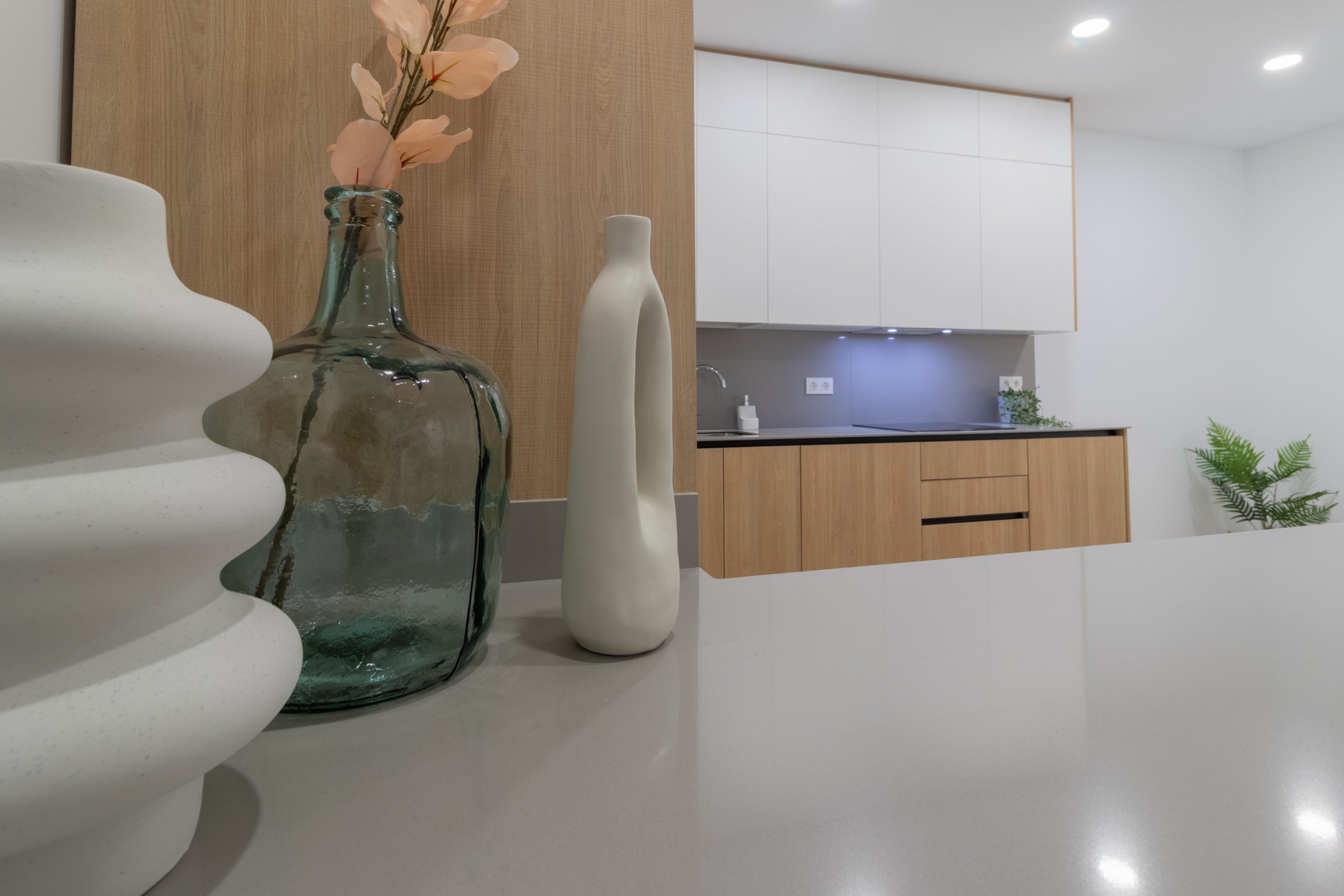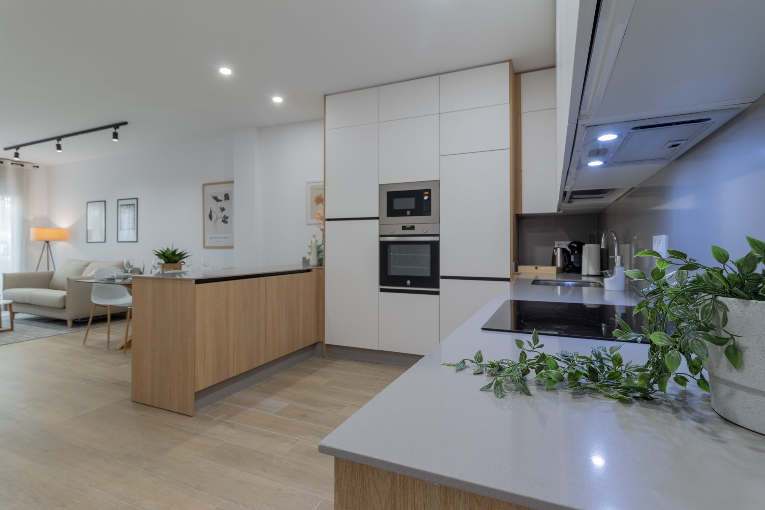 La intervención ha incluido una redistribución completa del espacio para optimizar la entrada de luz natural y mejorar la circulación entre estancias. Se han utilizado materiales de alta calidad, combinando acabados modernos con soluciones prácticas que aportan calidez y funcionalidad.