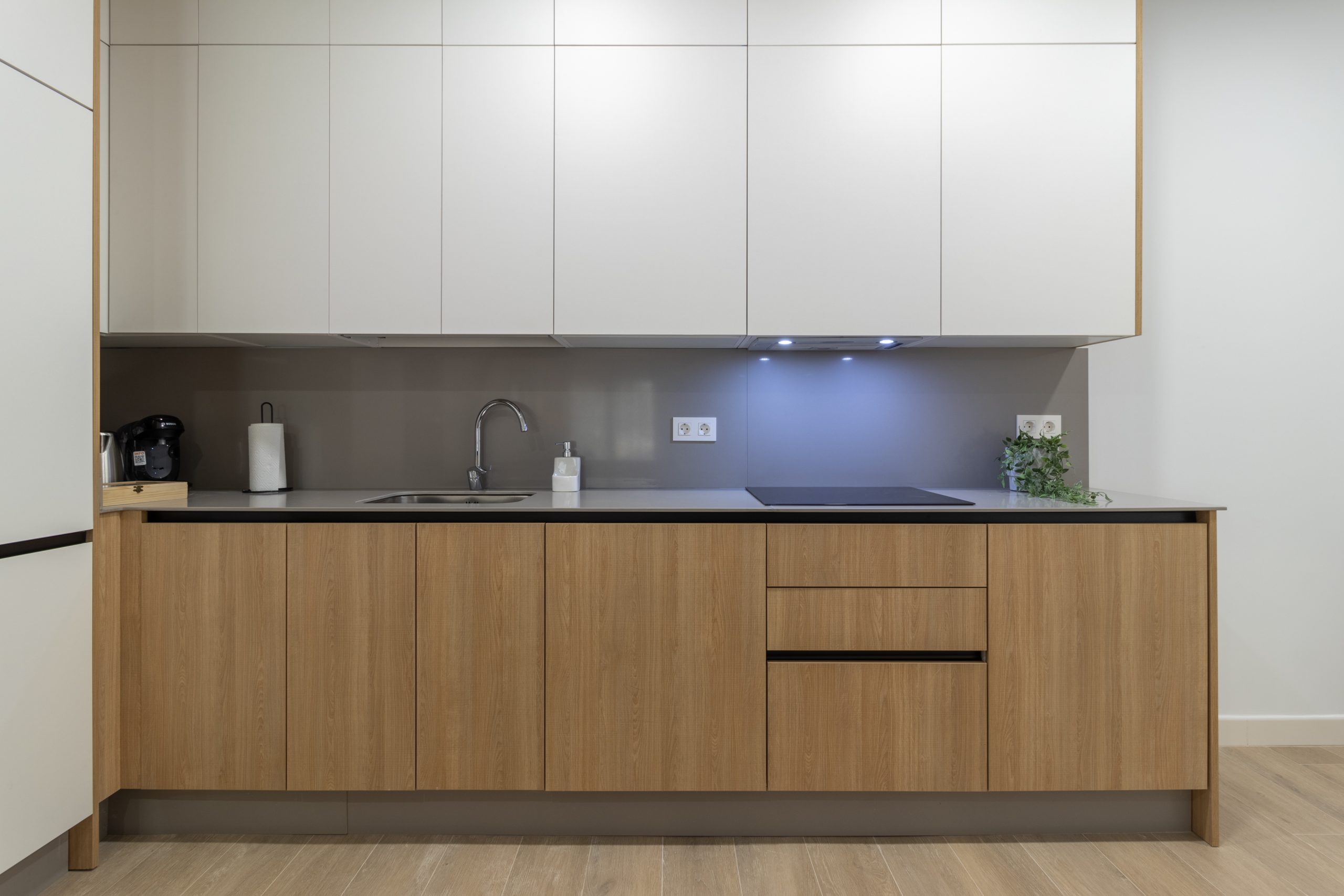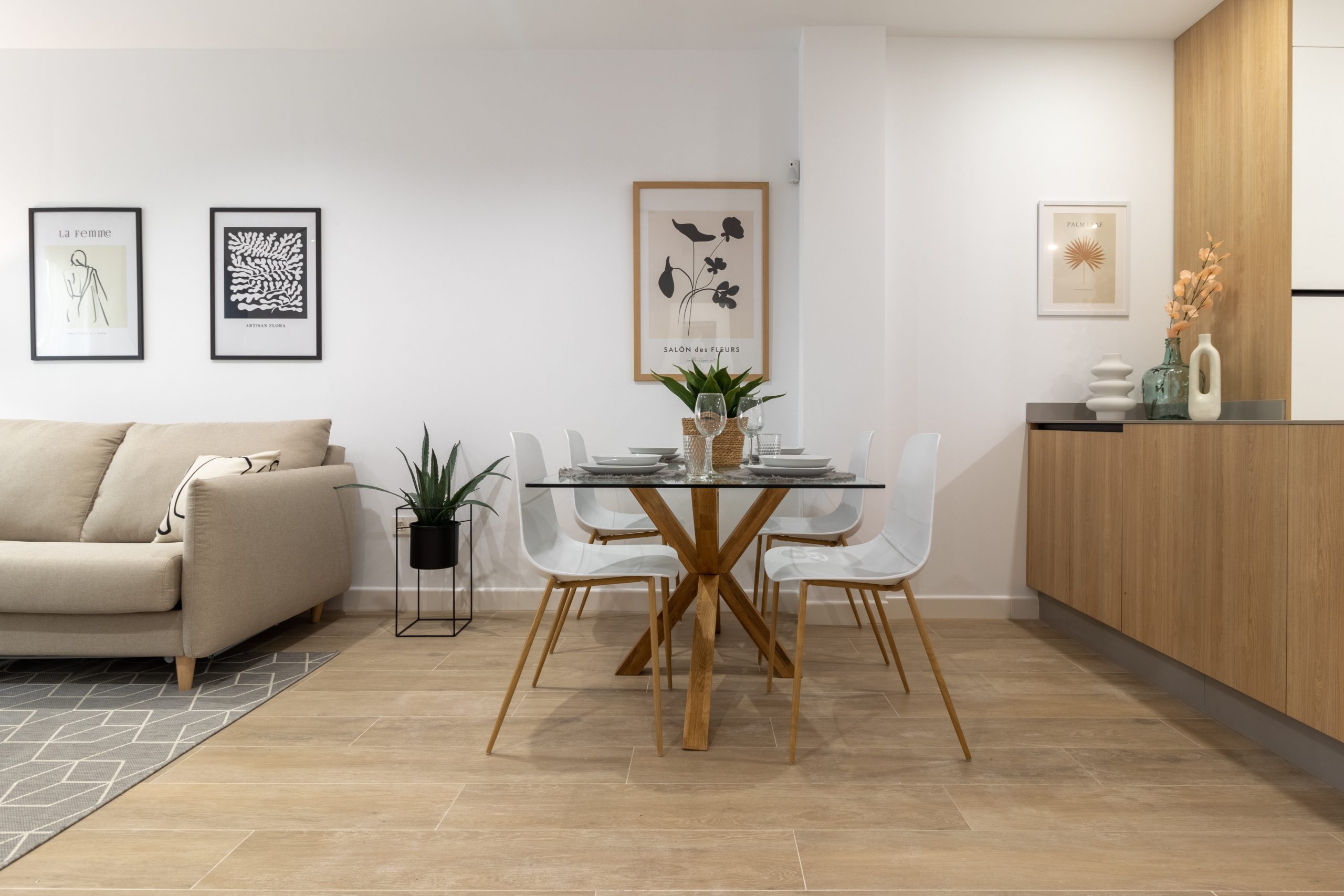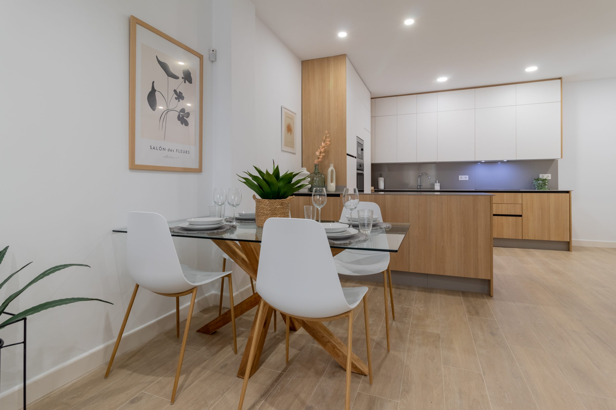 La intervención ha incluido una redistribución completa del espacio para optimizar la entrada de luz natural y mejorar la circulación entre estancias. Se han utilizado materiales de alta calidad, combinando acabados modernos con soluciones prácticas que aportan calidez y funcionalidad.